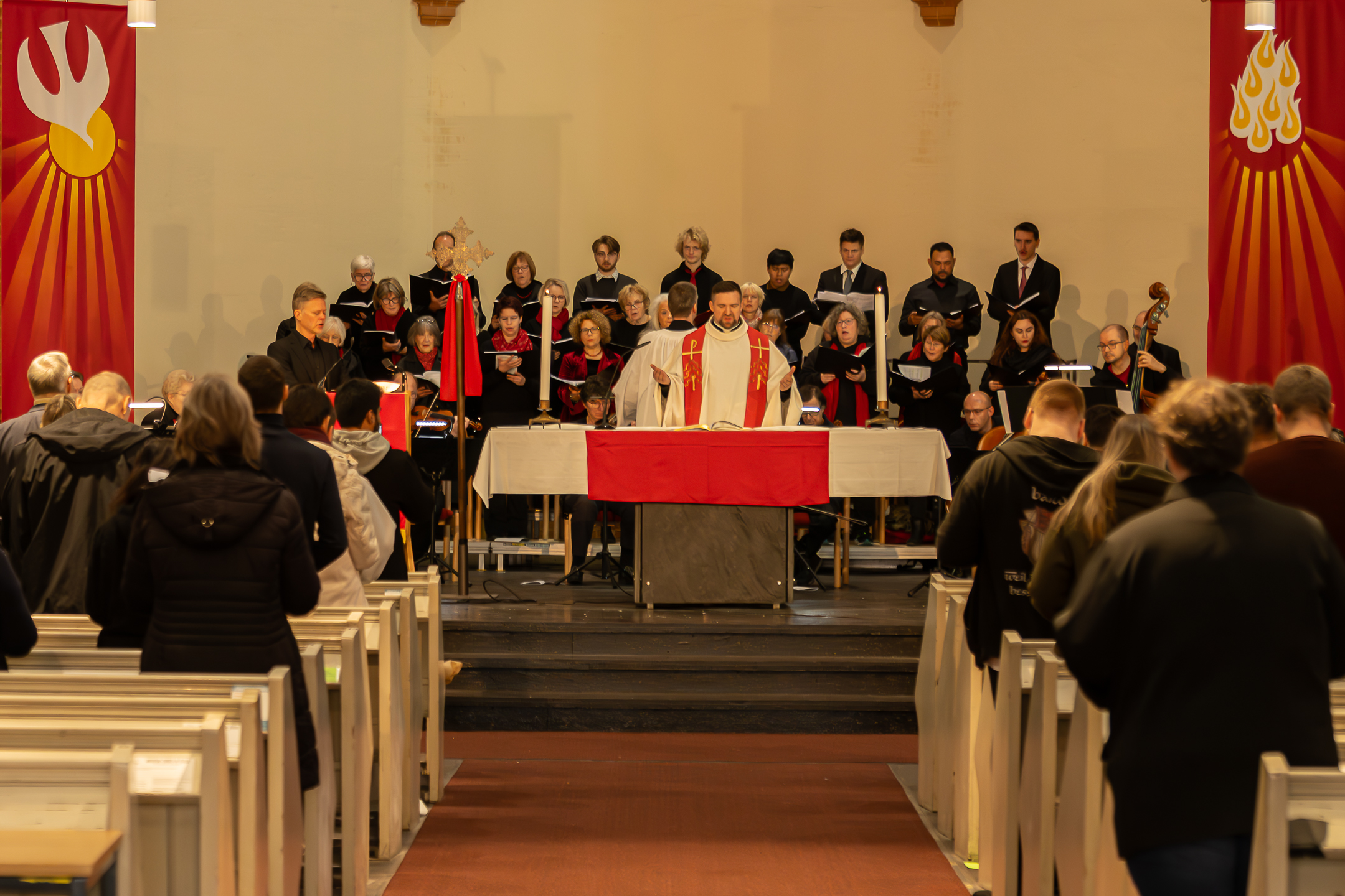 Our worship follows the Western liturgical tradition, shaped by the rich patterns of prayer and praise Christians have practiced for millennia. Because we share in this universal liturgy of the Church, our worship is both deeply rooted in ancient forms and genuinely ecumenical—embracing the diverse backgrounds of our congregation and connecting us to Christians in every time and place. Our musical life is equally diverse: organ, piano, choir, instrumental ensembles, global music, traditional hymns, and contemporary pieces all have a home here.